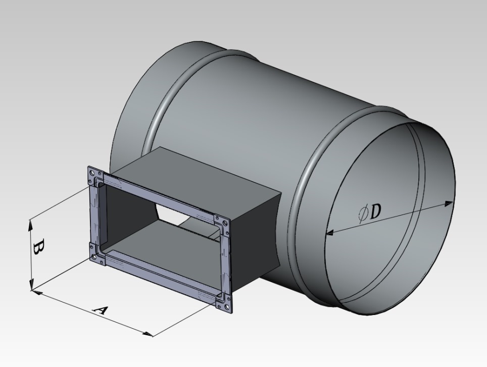 Прямоугольная стальная оцинкованная врезка в круглый воздуховод диаметром до 1250 мм