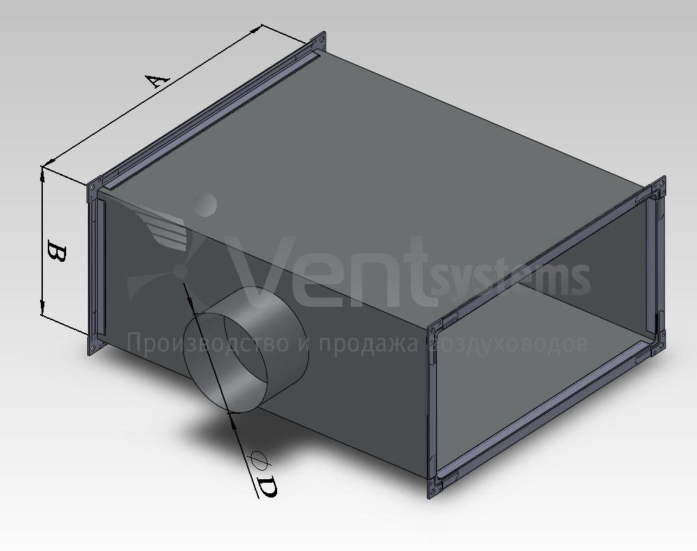Прямоугольный стальной оцинкованный тройник с фланцами и круглой врезкой